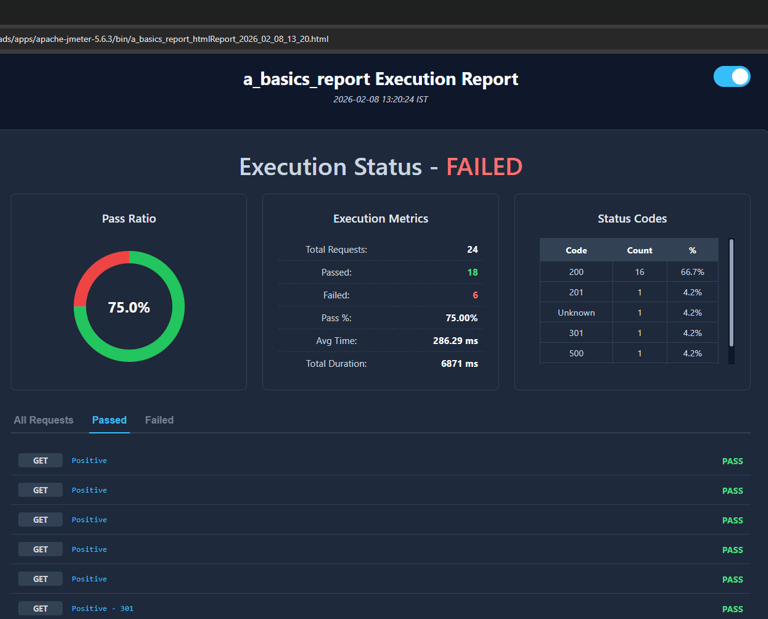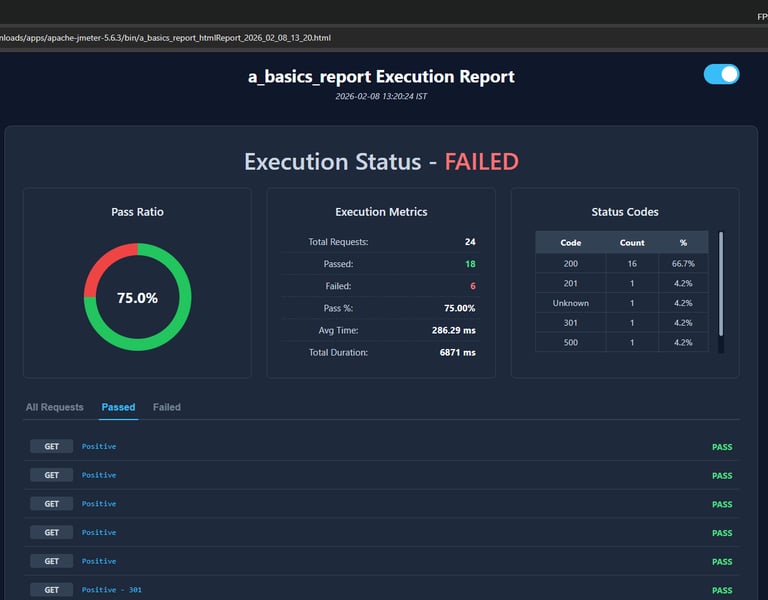 Built by an API Automation Engineer to generate structured, pass/fail-driven HTML execution summaries automatically after every run.